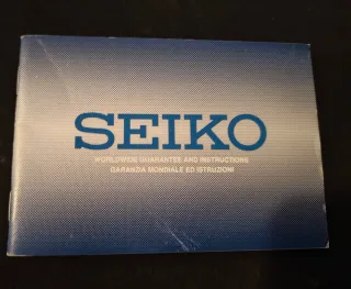 Libretto di garanzia e istruzioni per orologi Seiko. - Copertina blu con logo Seiko. - Testo in inglese e italiano.