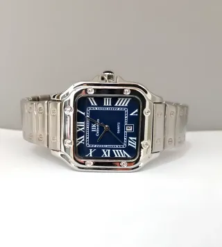 Orologio Uomo Collection Stile Luxury Watch •Cassa in acciaio da 40mm •Movimento al quarzo •Quadrante blu con numeri romani •Datario •Spedito con sacca di protezione Prezzo Stock SPEDIZIONE DISPONIBILE