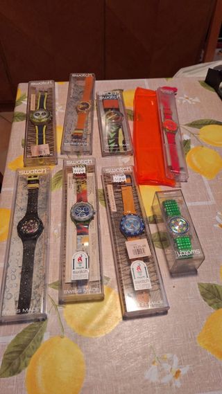 Collezione di orologi Swatch in diverse fantasie. Sono tutti nuovi, mai usati, e ancora nella confezione originale. - - Perfetti per collezionisti o amanti del brand. - Un'occasione imperdibile per aggiungere un tocco di colore al tuo stile!