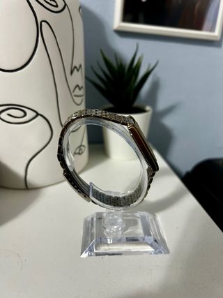 Propongo orologio Seiko 5 automatico dalla mia collezione privata. L'orologio, originale e perfettamente funzionante, presenta un design vintage. Le condizioni sono ottime, come visibile dalle foto. Dettagli tecnici: - Cassa in acciaio da 36mm (esclusa corona) - Quadrante nero tacche oro - Bracciale in acciaio con tutte le maglie - Funzionalità day-date con doppio datario (inglese e spagnolo) - Cambio giorno e numero tramite scatti corona - Ricarica automatica (non manuale o quarzo) Vendo per smaltimento collezione di famiglia. Sono disponibili altri modelli in bacheca. Possibile scambio a mano a Torino. #95