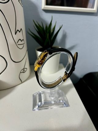 Elegante orologio vintage da donna Seiko con cassa placata oro e cinturino nero. Fondo in acciaio con matricola MANCA la pila e una revisionata in,generale - Cassa di forma quadrata. - Cinturino in pelle con texture. - Chiusura a fibbia dorata.