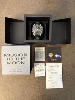 Moonswatch Swatch Omega Mission to the Moon Nuovo mai utilizzato Sul vetro ho applicato una pellicola protettiva Assolutamente originale!!! Comprato personalmente in negozio Swatch Scatola completa con scontrino e garanzia