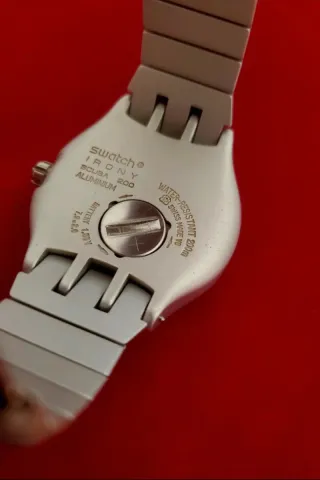 ***Vedi altri orologi dalla collezione di famiglia e articoli VINTAGE interessanti tra le mie inserzioni*** Orologio vintage SWATCH SCUBA IRONY ALUMINIUM SWISS MADE GRANDI DIMENSIONI WATER-RESISTANT 200 MT ! QUADRANTE ALTA LEGGIBILITA FUNZIONE DAYA AL 6 TUTTO ORIGINALE CON BRACCIALE ALLUMINIO ORIGINALE CONDIZIONI IMPECCABILI FUNZIONANTE VIENE FORNITO CON BATTERIA NUOVA Vedere foto per condizioni estetiche: fanno parte della descrizione