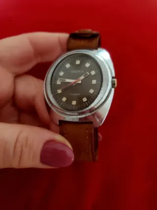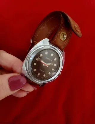 *** vedi altri orologi dalla collezione di famiglia e articoli VINTAGE interessanti tra le mie inserzioni*** Raro e unico Orologio Raketa made in cccp unione sovietica Russia Anni 70 Bellissimo Quadrante marrone Con marchio certificato qualità Grandi dimensioni Fondello con dedica " premio al miglior lavoratore piano quinquennale 10mo anniversario " bracciale in acciaio originale marchiato in russo con " acciaio" e il costo " 6 rubli" UNICO Qualche segno di usura sulla cassa tipico di questi orologi ***grazie per offerte sensate ***