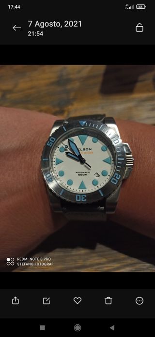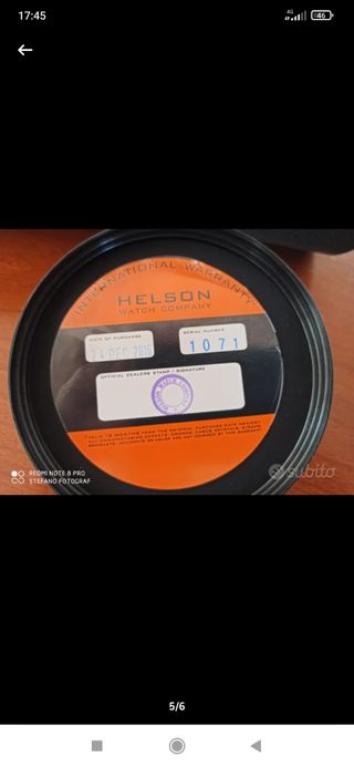 Orologio subacqueo Helson con cassa da 44mm. corredo completo impermeabile 500m valvola elio - Garanzia internazionale. - Data di acquisto: 24 Dicembre 2015. - Numero di serie: 1071.