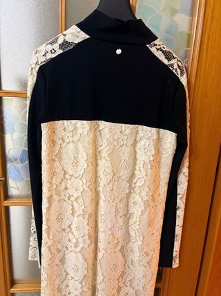 Abito donna pizzo e tessuto tecnico nero/beige