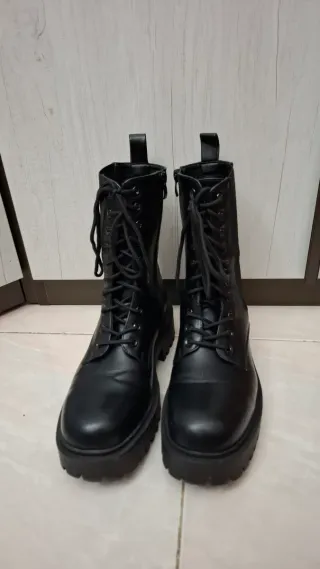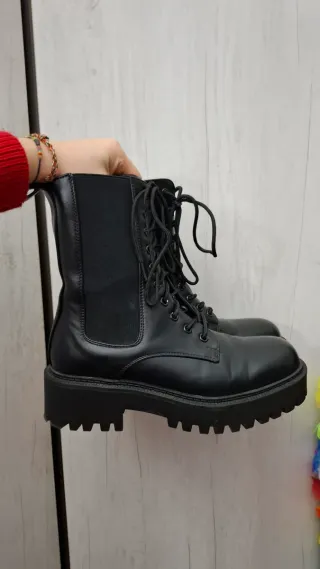 Anfibi neri con suola platform. - cerniera laterale - Design con lacci. - Inserti laterali elasticizzati.