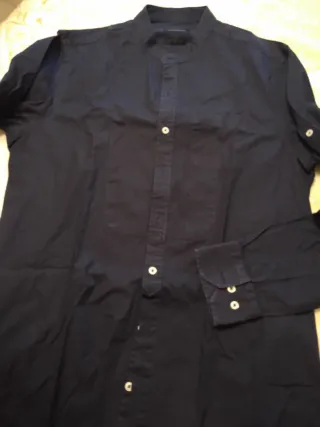 Camicia da uomo Sorbino in tessuto stretch. - Colore blu scuro. - Design moderno con colletto alla coreana.