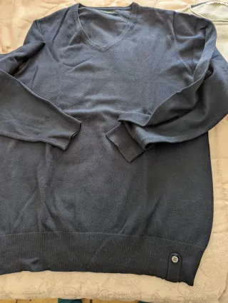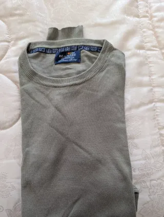 Maglione girocollo da uomo, colore verde militare. - Girocollo a costine. - Polsini e fondo a costine. - Etichetta interna con logo.