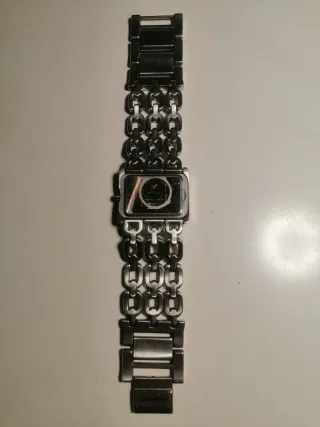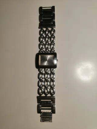 Elegante orologio Guess da donna W95057L1 - Movimento al quarzo - Cassa rettangolare, con display analogico. - Quadrante argentato. - Cinturino in acciaio regolabile.