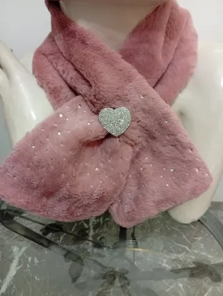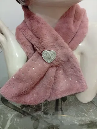 Scaldacollo in morbida pelliccia ecologica, impreziosito da una spilla a forma di cuore. - Materiale: pelliccia sintetica. - Dettaglio: spilla a forma di cuore con strass. - Colore: rosa.