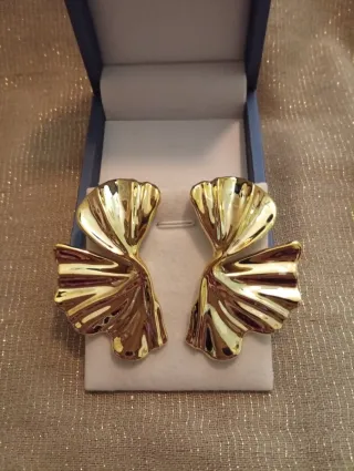 Eleganti orecchini pendenti con finitura dorata, presentati in una confezione regalo. - Design a forma di ventaglio stilizzato. - Chiusura a perno.