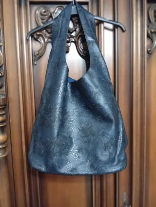 Borsa a spalla in pelle blu con un elegante motivo floreale in rilievo. Include una pochette interna coordinata ed estraibile - Motivo floreale in rilievo - Pochette interna inclusa