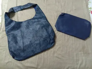 Borsa Hobo Blu con Pochette Interna Estraibile