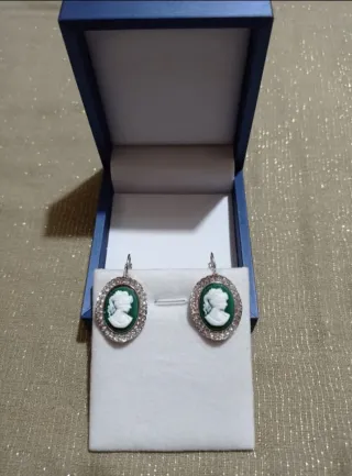 Eleganti orecchini con cammeo, stile retrò, perfetti per un regalo speciale. Presentati in una bellissima confezione. - Design con cammeo ovale. - Dettagli in argento e perle rosse. - Inclusa confezione regalo. SCONTO 50%