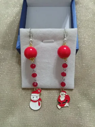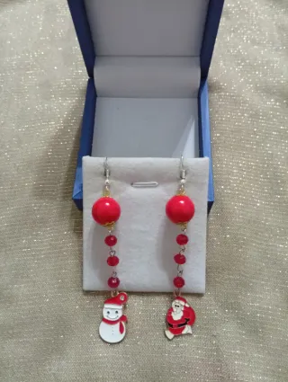 Deliziosi orecchini a tema natalizio, perfetti per aggiungere un tocco festivo al tuo look. -Lavorazione rosario - Decorazioni a forma di Babbo Natale e pupazzo di neve. - Pietre rosse in ceramica e cristalli luminosi. - Montatura in metallo color argento. - In confezione regalo SCONTO 60%
