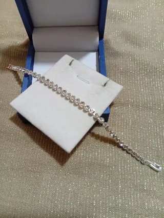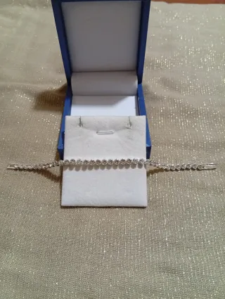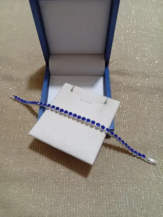 Elegante bracciale tennis con pietre blu scintillanti, presentato in una confezione regalo. - Design a tennis con pietre incastonate. - Chiusura sicura e discreta. - Ideale come regalo o per un'occasione speciale.