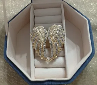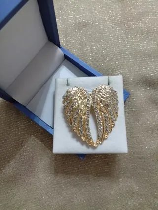 Spilla alla moda con un design a forma di ali d'angelo, che evoca uno stile retrò. - Dettagli scintillanti con strass. - Finitura dorata lucida. - In confezione regalo -