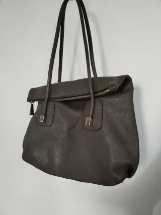 Borsa originale Coccinelle in morbida pelle colore taupe, modello capiente e leggero. Interno a righe logato con alcune macchie visibili (vedi foto), esterno in ottime condizioni. Zip con doppio cursore, manici robusti, qualità Made in Italy, codice lavorazione N°9. Perfetta per uso quotidiano.