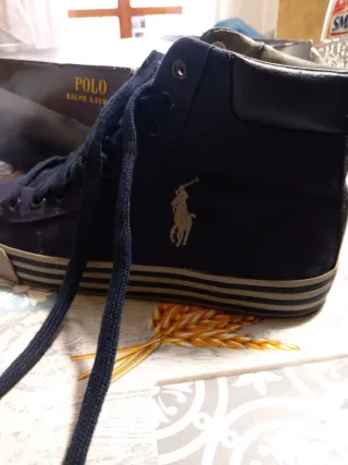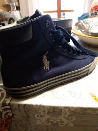Eleganti scarpe alte da uomo Polo Ralph Lauren. - Logo del cavaliere ricamato sul lato. - Dettagli a righe sulla suola. - Lacci blu.