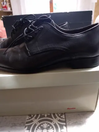 Eleganti scarpe da uomo in pelle nera. - Modello stringato classico. - Suola in gomma. - Dettagli cuciti sulla tomaia.