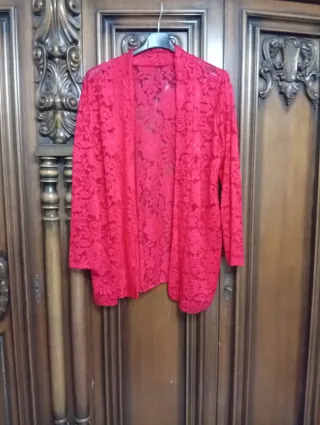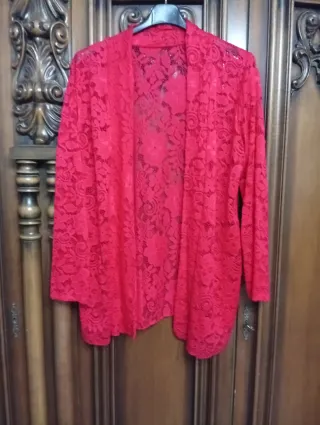 Elegante blazer in pizzo rosso, perfetto per aggiungere un tocco di stile. - Design in pizzo floreale. - Maniche lunghe. - Apertura frontale - Mai indossato- Tolto solo il cartellino- TAGLIA UNICA VESTE FINO AD UNA 54- SCONTO 50%