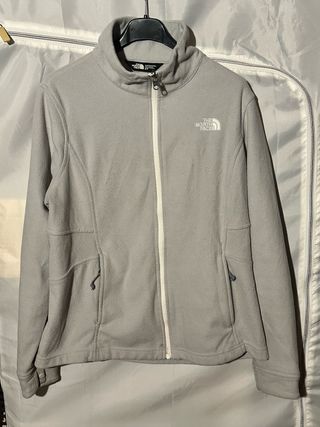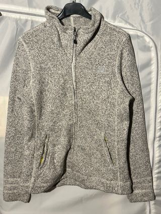 Pile The North Face da donna, taglia M. Perfetta per ogni occasione. - Tessuto mélange grigio. - Zip frontale. - Tasche laterali con dettagli gialli.