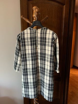Elegante abito Zara con fantasia a quadri. - Modello a trapezio. - Due tasche applicate sul davanti. - Scollo rotondo con bordino.