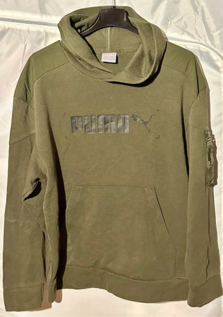 Felpa con cappuccio Puma da uomo, colore verde oliva. Presenta un design moderno con dettagli curati. - Logo Puma in rilievo sul petto. - Tasca a marsupio. - Dettaglio con zip sulla manica sinistra. - Cappuccio con coulisse.