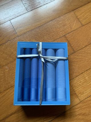 Set di fazzoletti in cotone, presentati in una confezione regalo. - Materiale: cotone. - Colore: varie tonalità di blu. - Confezione: scatola con nastro.