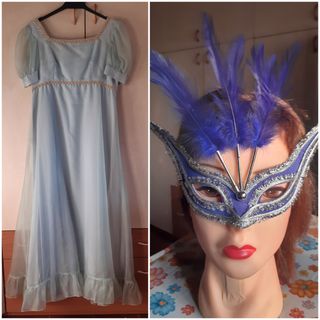😍Grazioso abito lungo azzurro stile Impero con mascherina 🎭 Bello sia così, da "damigella" oppure potrebbe andare anche come "fata"....a voi liberare la fantasia e l'allegria. Taglia più o meno 46 IT