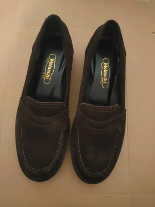 Scarpe da donna in camoscio marrone. - Modello mocassino con suola carrarmato. - Logo Molaschi sul sottopiede. - Made in Italy.