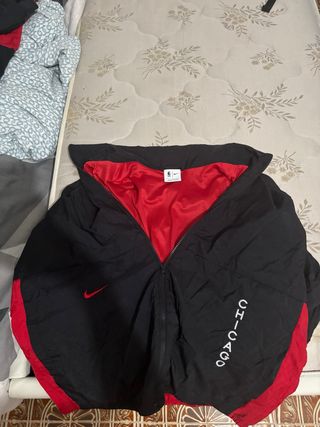 Vendo tuta a vento Nike Chicago Bulls. È nera e rossa, con dettagli a contrasto. - Perfetta per tifare la tua squadra del cuore! - Presenta una zip frontale e un logo Nike ricamato. - Ottime condizioni.
