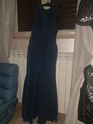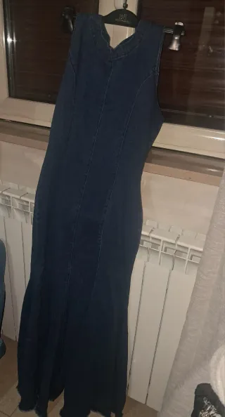 Elegante abito lungo in denim, modello a sirena con un grazioso volant sul fondo. - Tessuto jeans. - Design a sirena. - Volant decorativo sul fondo.