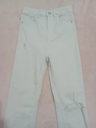 Pantaloni jeans di Stradivarius in bianco. Stile skinny, elasticizzati, con strappo al ginocchio e vita alta. Taglia: 34 / XS. Da indossare per la prima volta.