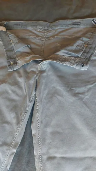 Pantaloni chino dal taglio classico. - Vita alta. - Elasticizzati - Gamba dritta. -Molto leggeri, estivi/primaverili -Mai Indossati, taglia sbagliata -Perfetti con una t-shirt o canottiera bianca - Prezzo acquisto 60