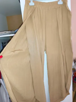 Pantaloni eleganti di Zara in colore marrone. Hanno un taglio moderno e sono comodi. - Cintura elastica. - Pinze anteriori. - Piega in basso. - Tasche posteriori finte