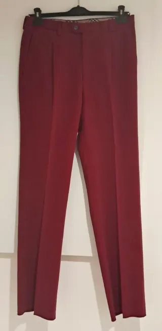 Pantaloni da cerimonia da uomo del marchio Hackett in colore rosso. Buono stato, un piccolo sfregamento sul bottone interno nella parte posteriore, come si vede in una delle foto. Taglia 34