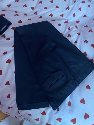 Pantaloni da cerimonia blu navy, 100% cotone, vita: 52cm, lunghezza: 110cm, larghezza sotto gamba: 19cm, larghezza sopra gamba: 37cm, taglia: 50, Massimo Dutti con etichetta mai usati.