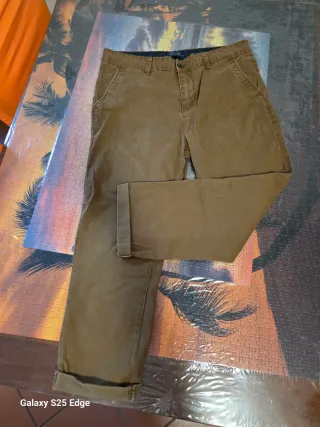 Pantaloni chino Zara di colore marrone. - Chiusura con zip e bottone. - Tasche dietro. - Vestibilità stretta. - Comodo ed elegante