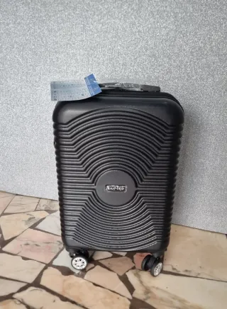 Valigia trolley di colore nero, perfetta per i tuoi viaggi. Design moderno e funzionale. - Materiale resistente. - Ruote per un facile trasporto. - Manico telescopico.