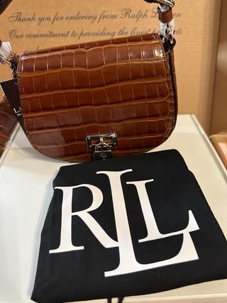 Borsa a tracolla in pelle effetto coccodrillo. - Chiusura con lucchetto argentato. - Manico superiore e tracolla regolabile. - Logo RLL stampato sul sacchetto antipolvere.