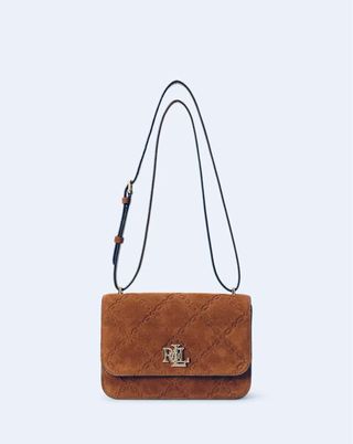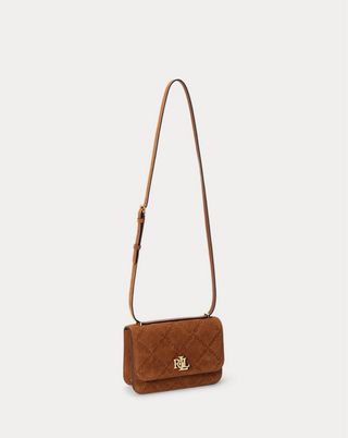 Borsa a tracolla in camoscio marrone con logo dorato. - Motivo a rombi trapuntato. - Logo RL dorato sul davanti. - Tracolla regolabile.