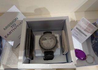 Orologio Omega Swatch Mission to Earthphase, nuovo. - Cassa in bioceramica. - Quadrante argentato. - Cinturino in velcro nero.