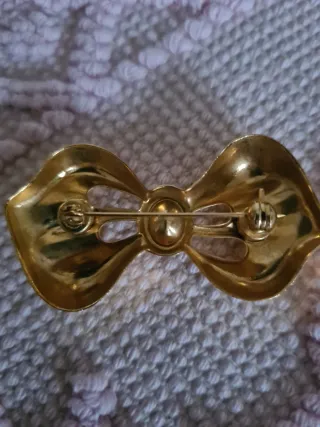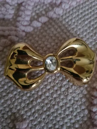 Elegante spilla a forma di fiocco, un accessorio che aggiunge un tocco di classe. - Design a fiocco. - Dettaglio centrale con strass luminoso.