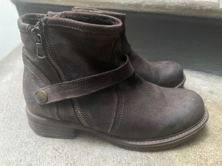Scarponcino, stivaletto pelle scamosciata, marrone, effetto usurato, con zip. N. 36. Usato poco conservato in ottimo stato. Come in foto.