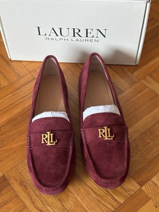 Mocassini Barnsbury in camoscio. L'esclusivo logo Lauren dona uno stile inconfondibile a questi moderni mocassini in camoscio, foderati in pelle pieno fiore e caratterizzati da un'esclusiva suola con gommini. Tacco di 10 mm. Punta arrotondata. Modello senza lacci. Logo metallizzato "LRL" sulla tomaia. Soletta imbottita in pelle. Suola con gommini. Tomaia e fodera: pelle. Colore : Pinot Noir TG : 36,5 Prodotto nuovo e originale.