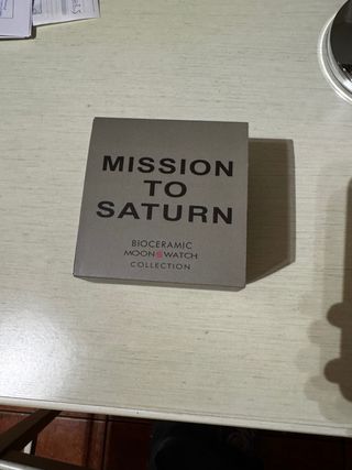 Orologio Swatch Omega Mission to Saturn della collezione Bioceramic. - Modello: Mission to Saturn - Collezione: Bioceramic MoonSwatch - Materiale: Bioceramica