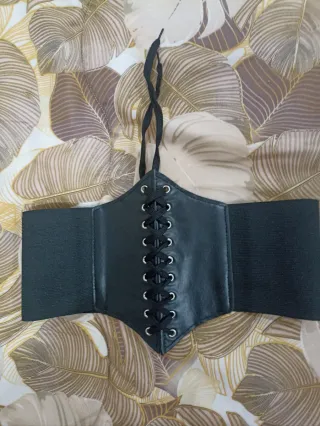 Elegante cintura da donna con dettaglio a lacci sul davanti. Realizzata in ecopelle, si adatta alla figura grazie ai pannelli laterali elasticizzati. - Chiusura con lacci. - Pannelli laterali elasticizzati. - Design a corsetto.