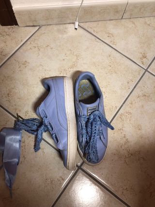 Scarpe Puma azzurre con lacci in pizzo. - Lacci in pizzo azzurro. - Logo Puma dorato sulla soletta.